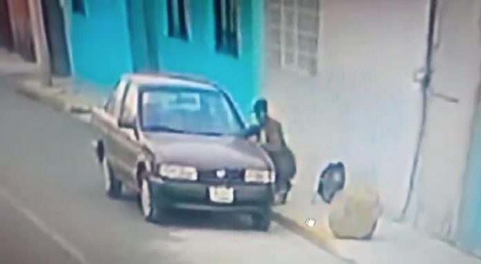 El instituto publicó un video en el que se puede ver el momento en que el sujeto se acerca sigilosamente al auto, poco a poco se acerca más hasta que se cerciora que nadie lo está viendo.