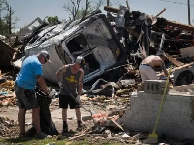 Desde el sábado, los tornados han arrasado la región conocida como las Grandes Llanuras del sur del país, partiendo del norte del estado de Texas y avanzando hacia el este, pasando por Arkansas y Oklahoma. Muchos edificios e infraestructuras quedaron destruidos a su paso.