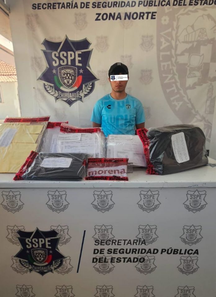 Elementos de la Secretaría de Seguridad Pública del Estado (SSPE) adscritos al Grupo Especial de Detectives detuvieron a Eric Iván E. P. de 19 años, por presuntos delitos electorales en Ciudad Juárez.