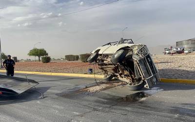 Chihuahua.- En un aparatoso accidente registrado en el kilómetro 17 de la carretera que conduce a Ciudad Juárez, un conductor de una pick up Ranger impactó contra un tráiler y terminó volcando su vehículo. El incidente dejó cuantiosos daños materiales, un considerable derrame de combustible y un gran caos vial en la zona.