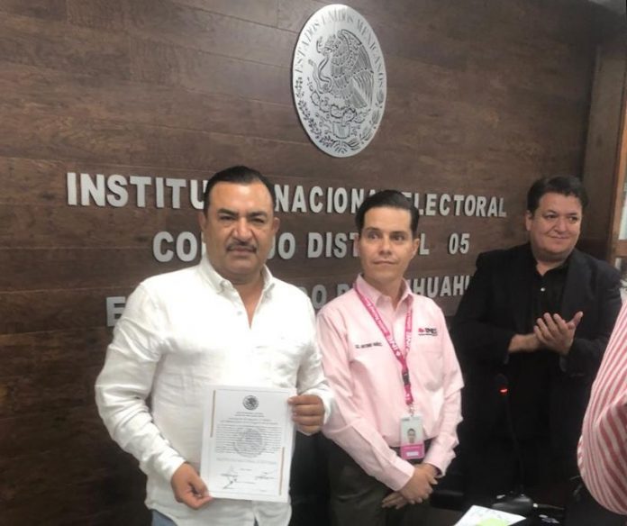 Fue alrededor de la 1:30 de la madrugada cuando el presidente de la asamblea distrital electoral del V Distrito Federal, con cabecera en el municipio de Delicias, le entregó su constancia de mayoría de votos.