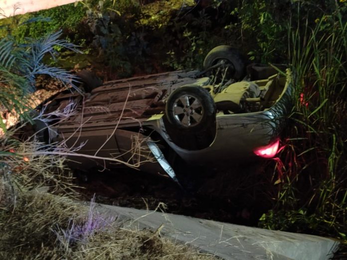 El suceso ocurrió cuando el conductor del automóvil, presuntamente intentando evadir las señales de alto de la unidad de Vialidad, emprendió la huida a alta velocidad. Sin embargo, su intento de escape llegó a un abrupto final cuando perdió el control del volante, saliéndose del camino y chocando contra una valla metálica de contención, para finalmente caer al interior del canal, quedando el vehículo sobre su toldo.