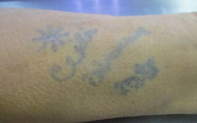 El tercer hombre, de complexión media, vestía un bóxer rojo y una playera azul con letras que decían “puma”. Presentaba varios tatuajes poco legibles, entre ellos uno en el antebrazo con la palabra “lobo”.