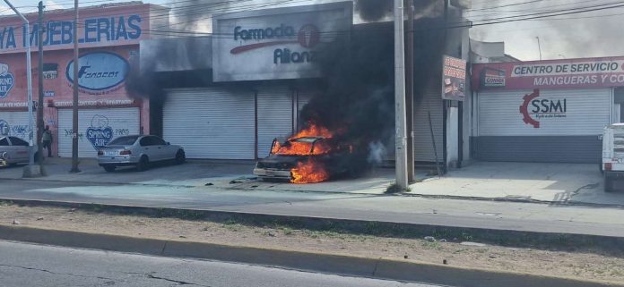Los hechos ocurrieron afuera de unos locales comerciales que están sobre la avenida de las Industrias casi vialidad Los Nogales, donde se registró un voraz incendio que consumió en su totalidad un vehículo particular.