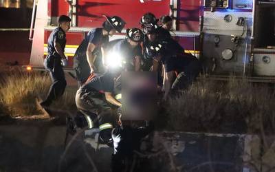 Chihuahua.- Una fuerte movilización policial se registra en la zona norte de la ciudad, donde realizan maniobras para rescatar a una mujer que cayó en un arroyo.