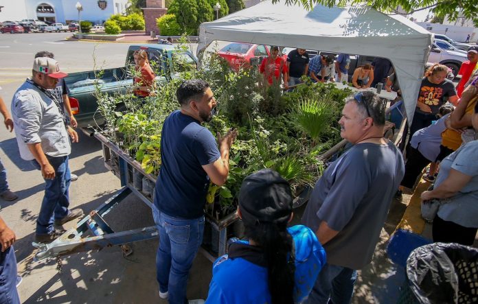 Torrecillas López mencionó que esta iniciativa es una gestión del alcalde Jesús Valenciano y aseguró que el Departamento de Medioambiente ofrece asesoría técnica para apoyar a la ciudadanía en el cuidado de sus árboles. Se donaron aproximadamente 20 especies diferentes, incluyendo moro, palma, huizache, mezquite, palo verde, encino, pino, acacia de tres puntas, parras, maguey y cactáceas, entre otras.
