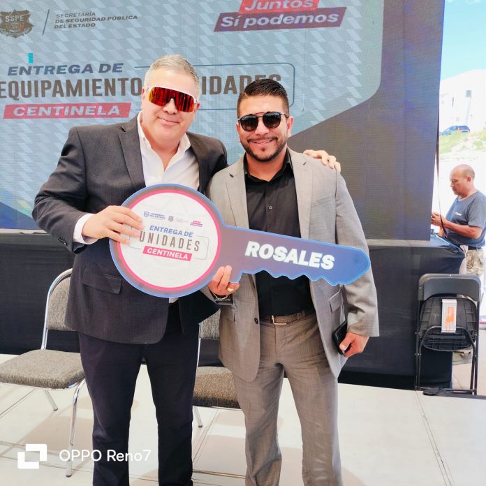 Por parte del municipio de Rosales, asistió el Alcalde, el C.P Marcial Márquez Gutiérrez y el Director de Seguridad Pública Municipal, el Lic. Víctor Hugo Soto Flores, quienes agradecieron a la Gobernadora por la entrega de una nueva unidad, uniformes y equipo táctico para los elementos de seguridad pública de Rosales.