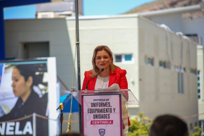 Delicias.- En una ceremonia celebrada en la Ciudad de Chihuahua, la Gobernadora del Estado de Chihuahua, Maru Campos, entregó equipo a las Direcciones de Seguridad Pública del estado entre ellas la de Delicias. Este importante acto contó también con la presencia del secretario de Seguridad Pública en el Estado, Gilberto Loya.