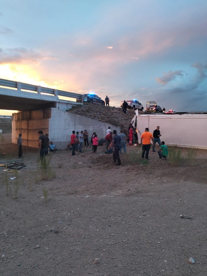 La Coordinación Estatal de Protección Civil (CEPC), con base en información proporcionada por el Ayuntamiento de Saucillo, dio a conocer que el percance ocurrió alrededor de las 5:38 horas, cuando una unidad de transporte de personal de una empresa maquiladora, volcó a la altura del kilómetro 91 de dicha rúa.