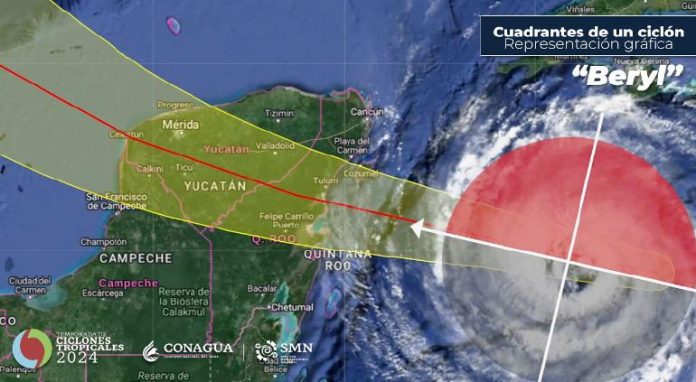 México.- Beryl tocará tierra esta noche entre las 23:00 del jueves y 2:00 del viernes en Tulum, Quintana Roo, como huracán categoría 2, informó el SMN de Conagua.
