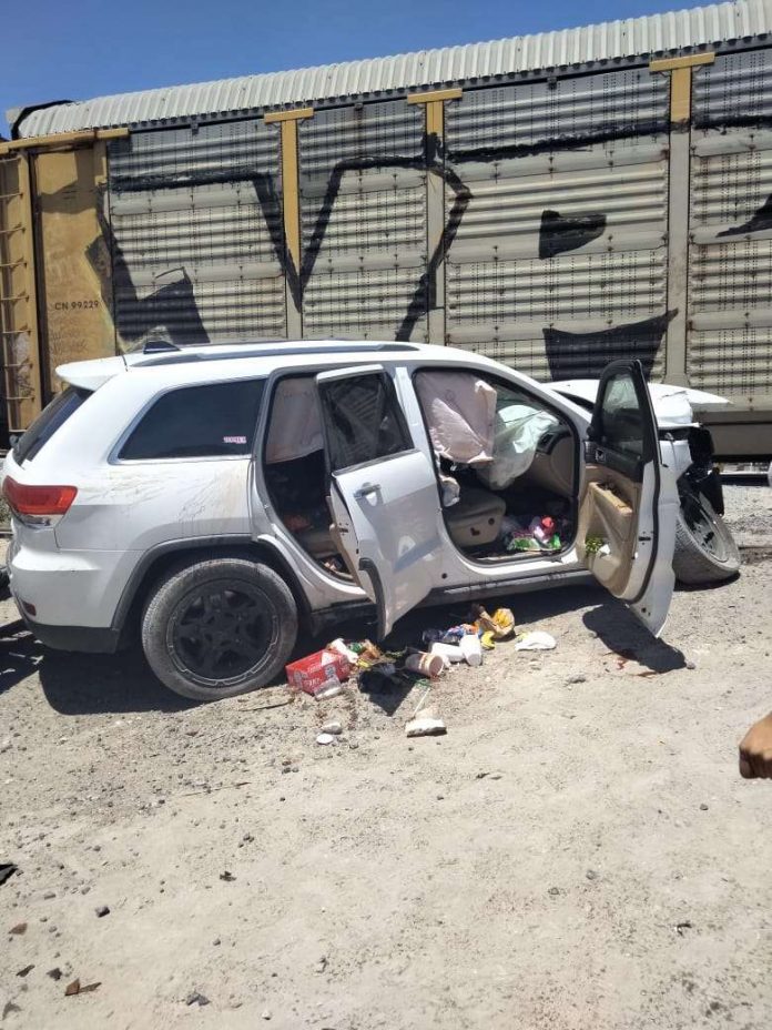 Chihuahua.- Una camioneta con personas que se encontraban en un balneario en Samalayuca fue embestida por el tren.