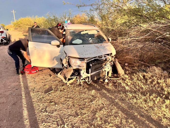 Un conductor que transitaba sobre la carretera de Satevó hacia Ciudad Delicias perdió el control de su vehículo a la altura del entronque de la presa Las Vírgenes, impactándose contra un árbol de mezquite.