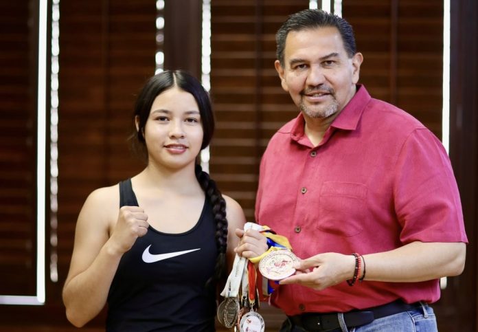 Este día el alcalde Cruz Pérez Cuéllar recibió en su oficina la visita de Valentina Muñoz, quien acudió en compañía de su familia con el propósito de solicitar apoyo para poder hacer posible el viaje y su participación en el próximo Campeonato Mundial Juvenil de Box que se realizará en Croacia.