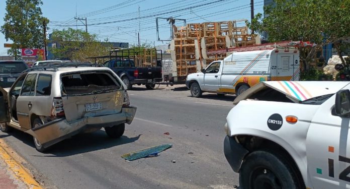 Delicias.- Se registró un aparatoso percance vial sobre la avenida Fernando Baeza, entre la avenida Segunda y la avenida Cuarta Sur, en el que se vieron involucrados tres vehículos en un choque por alcance.