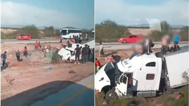 México.- Un tractocamión que transportaba decenas de migrantes, presuntamente indocumentados, se accidentó en el kilómetro 85 de la carretera México-Nogales, en los límites con Sinaloa, el lunes 8 de julio.