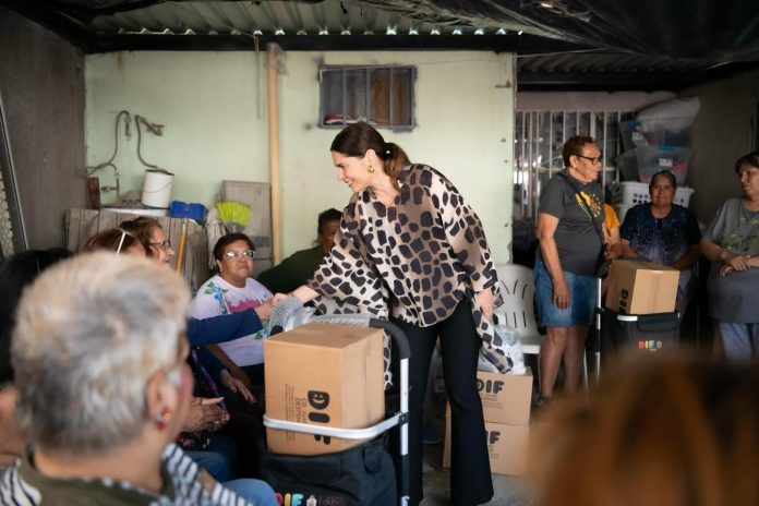 La presidenta del DIF hizo estas visitas con el propósito de realizar la entrega de despensas con productos de la canasta básica, además escuchó las inquietudes que le compartió cada una de las usuarias y usuarios de los CAM.