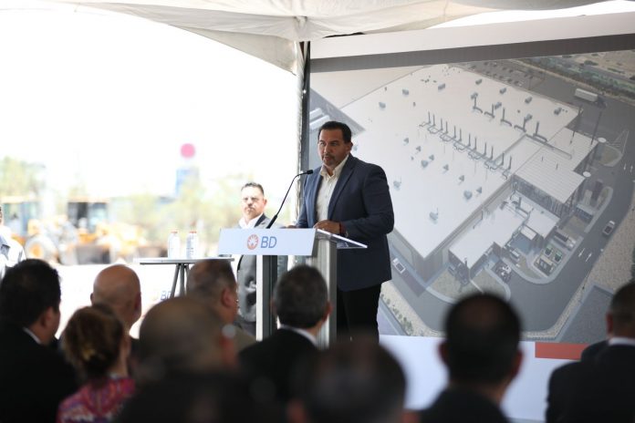Ciudad Juárez.- Esta tarde el Presidente Municipal, Cruz Pérez Cuéllar, participó en la colocación de la primera piedra de la tercera planta de la maquiladora Becton Dickinson, que estará localizada en la calle General Roberto Fierro 6123 en el Parque Industrial Aeropuerto, en la que se invertirán 80 millones de dólares.