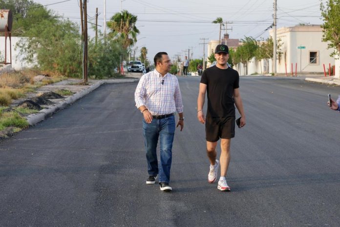 Delicias.- El alcalde Jesús Valenciano supervisó los trabajos de pavimentación en la calle Quinta sur, donde se pavimentaron 26 mil 500 metros cuadrados con una inversión superior a los 9 millones de pesos. Esta vialidad no había sido objeto de trabajos de recarpeteo desde que se inauguraron las instalaciones de la Feria Expo Delicias.