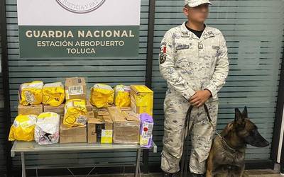 Chihuahua.- En un operativo clave en el marco de las Estrategias Nacionales de Seguridad Pública y de Prevención de Adicciones “Juntos por la Paz”, la Guardia Nacional (GN) logró interceptar un cargamento de 18 envíos de mensajería que contenían marihuana y productos derivados, en el Aeropuerto Internacional de Toluca (AIT).