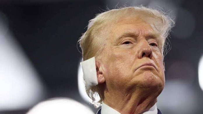 Es sabido que Donald Trump siempre entra en escena con la canción God Bless the USA, del cantante de country Lee Greenwood. Este lunes en la Convención Republicana, que se celebra en Milwaukee, no faltó a su tradición. Aunque no fue una entrada cualquiera. Greenwood entonó en directo su balada patriótica a eso de las 21.00 hora local, más o menos 52 horas después de que el expresidente sobreviviera al intento de atentado que sufrió el pasado sábado durante un mitin en Pensilvania. El expresidente echó a andar con parsimonia y gesto sombrío, seguido por una cámara y entre el delirio de las miles de personas presentes en el estadio de baloncesto en el que se celebra hasta el jueves su aclamación como aspirante a la presidencia. Trump llevaba vendada la oreja derecha, la misma que rozó una de las balas con las que el tirador Thomas Matthew Crooks a punto estuvo de matarlo.