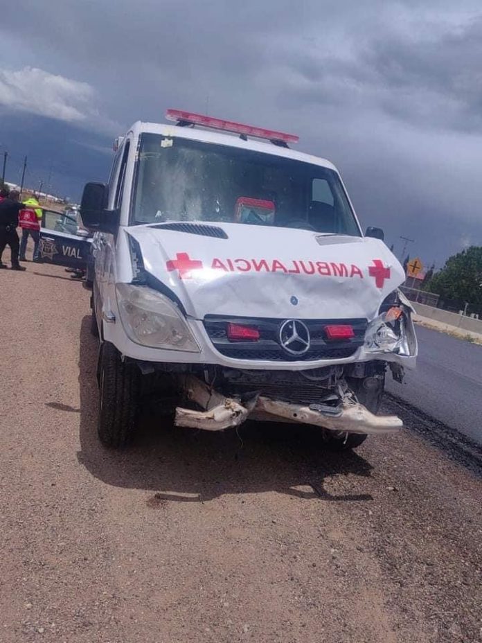 Chihuahua.- La tarde de hoy, a las 12:58 horas, la Policía Vial atendió un incidente en el kilómetro 9+800 del Corredor Comercial. Según el reporte oficial, se vieron involucrados una ambulancia Mercedez Benz Sprinter de color blanco, con placas DL3866A del modelo 2007, conducida por Carlos O. T., y una Dodge Ram blanca, con placas ED9472A y modelo 2023, conducida por Mikel Alexander L. L.