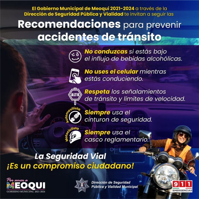 Agregó, que esta campaña dio inicio desde el pasado lunes 15 de julio, indicando que la seguridad vial, debe de ser un compromiso ciudadano, mencionando: “La mayor parte de los accidentes en el municipio son por no respetar los límites de velocidad y la señalética como los altos o las vueltas prohibidas, y se trata de eso, de crear conciencia en los conductores, ya que la mayoría de personas lesionadas en accidentes es por no usar los cinturones de seguridad o los motociclistas por no traer su casco”.
