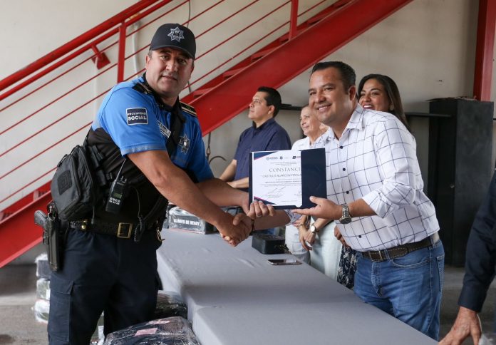 Acompañado del diputado Roberto Carreón y del director de Seguridad Pública, Jorge Luis Bustamante, el alcalde entregó uniformes a la totalidad de los elementos. La dotación incluyó uniformes policiales, zapatos, candados de mano, gorras, placas metálicas y pares de guantes, elementos esenciales para que los agentes desempeñen sus labores con eficacia y profesionalismo.
