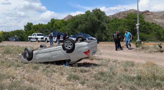 Chihuahua.- Durante la tarde de este viernes, una aparatosa volcadura se registró en la Vialidad Sacramento en sentido de norte a sur, la cual dejó un saldo de una persona lesionada y enormes daños materiales, elementos de la Policía Vial atienden el hecho.