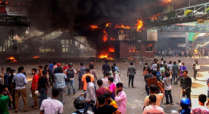 Se dice que los manifestantes estaban demandando a las autoridades la eliminación del sistema de cuotas, la cuál reserva de puestos de trabajo para los familiares de los veteranos de la guerra de independencia de Pakistán en 1971.