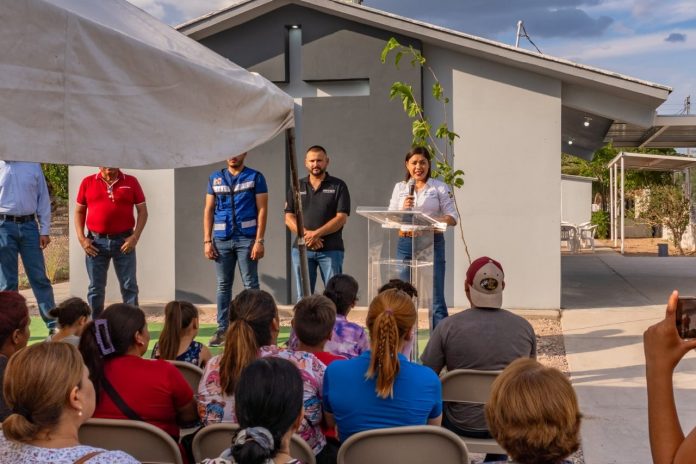 Meoqui.- La comunidad de Lomas del Consuelo ya cuenta con su nueva Sala de Velación, la cual fue entregada por la Arq. Miriam Soto, quien mencionó que era un compromiso desde tiempo atrás, con una inversión superior a los 300 mil pesos, con la rehabilitación del espacio, vegetación, colado de banquetas, reparación de los baños, e instalación de miniplits, agregando que la realización de esta obra fue gracias a la petición de los vecinos, ya que estos lugares son significativos para las comunidades.