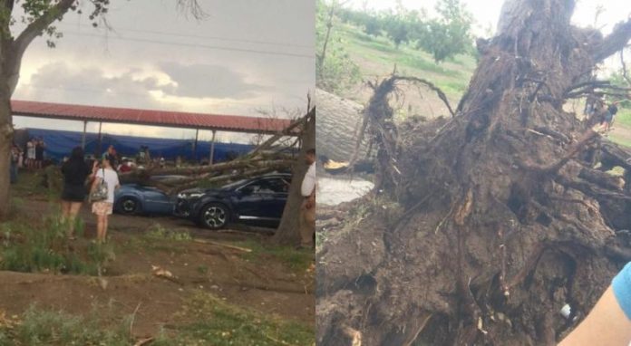 Las fotografías muestran el árbol caído sobre dos automóviles y según contaron las personas que estaban en el lugar, esto se debió a una tormenta.