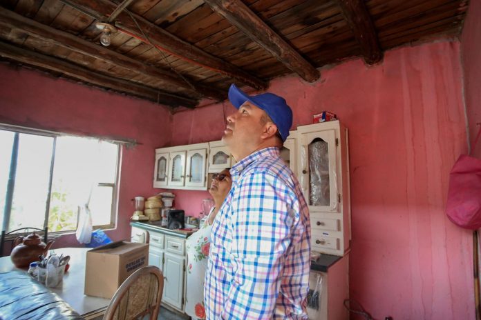 Valenciano también se dirigió al domicilio de la señora Tranquilina Sánchez otra adulta mayor, donde inspeccionó la vivienda y constató que el techo de vigas está a punto de derrumbarse. “Estos son de los casos donde estamos pidiendo ayuda a la gobernadora Maru Campos. Nosotros aportaremos recursos para poder rehabilitar algunos techos,” comentó el alcalde.