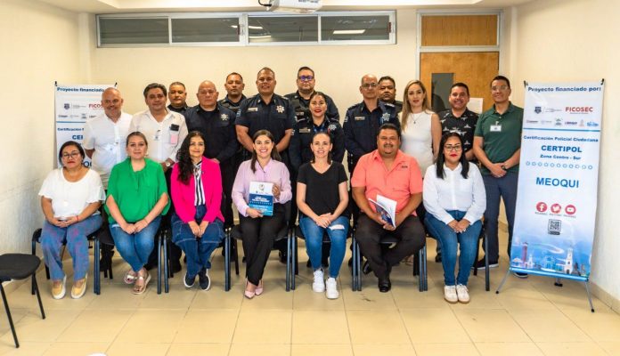 Meoqui.- “Estoy muy contenta porque acabamos de tener la resolución del Comité Ciudadano que nos evaluó en la certificación CERTIPOL, y con orgullo les decimos a los meoquenses que tenemos una Policía Municipal certificada, la primera de la región, claro que nos llena de orgullo, se trabajó muchísimo como equipo para cumplir con todos los estándares, sacamos muy buena calificación de 99.96, y agradecidos con todo los involucrados, FICOSEC, la Secretaría de Seguridad Pública del Estado, con la Gobernadora Maru Campos, con INSYDE, con el Comité Ciudadano y todos los que participaron para que esto fuera posible” así lo dijo la alcaldesa Miriam Soto tras recibir la resolución por parte del Comité Ciudadano que acredita como Certificada a la DSPM Meoqui.