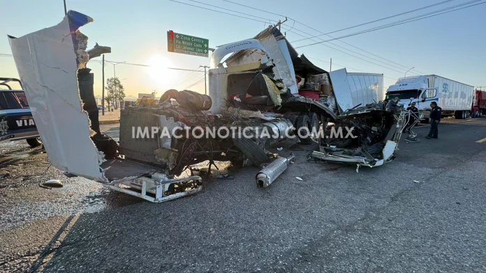 Los datos señalan que dos tráileres estaban detenidos por el semáforo en rojo, en sentido de sur a norte, es decir, a punto de ingresar a la ciudad, cuando de pronto llega un tráiler de color blanco de la empresa Terramex y los impacta por detrás.