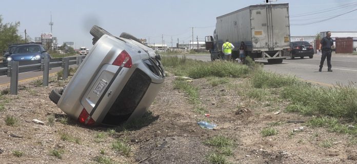Delicias.- Este sábado, un grave accidente se registró en la carretera federal 45, a la altura del puente de los lotes urbanos, cuando una quinta rueda de la marca Freightliner chocó con un vehículo particular, causando una aparatosa volcadura.