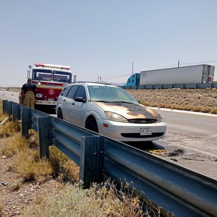 Meoqui.- Un vehículo Ford Fiesta color gris se incendió este sábado en la carretera que va de sur a norte, pasando por Bachimba. El propietario del vehículo, quien no quiso ser identificado, informó que desconoce las causas del incendio.