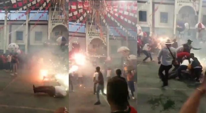 Todo iba bien hasta que uno de ellos quiso jugar con una pieza grande denominada “torito”, lo cuál terminó mal debido a que la fuerza de la pirotecnia pudo más que él y terminó tirándolo al suelo.