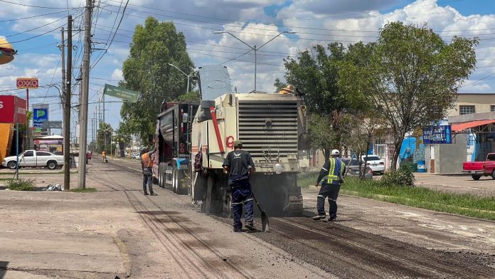 Delicias.- Desde este pasado viernes comenzaron los trabajos de rehabilitación de la carpeta asfáltica en la avenida Plutarco Elías Calles, específicamente entre las avenidas Fernando Baeza y Enrique Sáenz. Actualmente, se está llevando a cabo el fresado, proceso que implica la retirada del pavimento en mal estado.