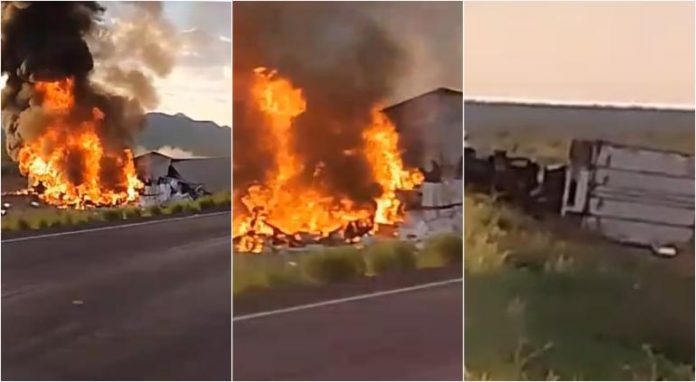 Este incidente se presentó a la altura del kilómetro 36 de dicha vía y captaron cómo las dos pesadas unidades quedaron fuera de la cinta asfáltica. La cabina de uno de ellos se encontraba completamente en llamas.