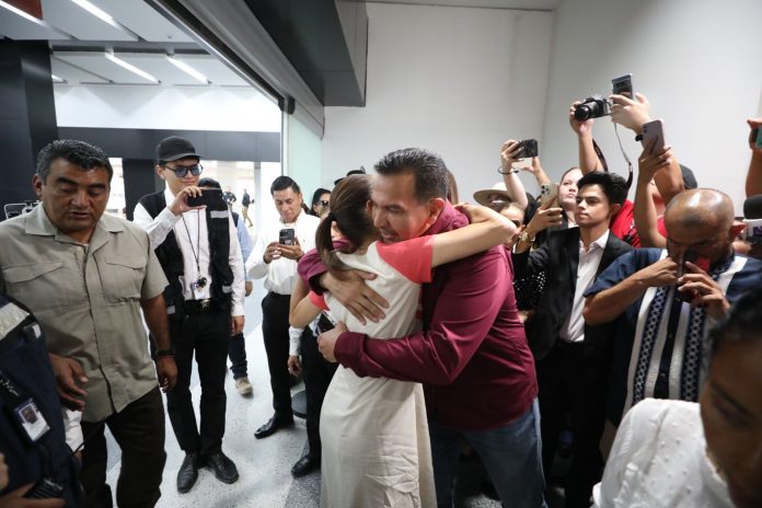 Una vez que acompañado de su esposa, la presidenta del DIF Municipal, Rubí Enríquez, dieron la bienvenida a Sheinbaum Pardo en el aeropuerto, se integró a la caravana de López Obrador para acompañarlo a las nuevas instalaciones del Seguro Social.