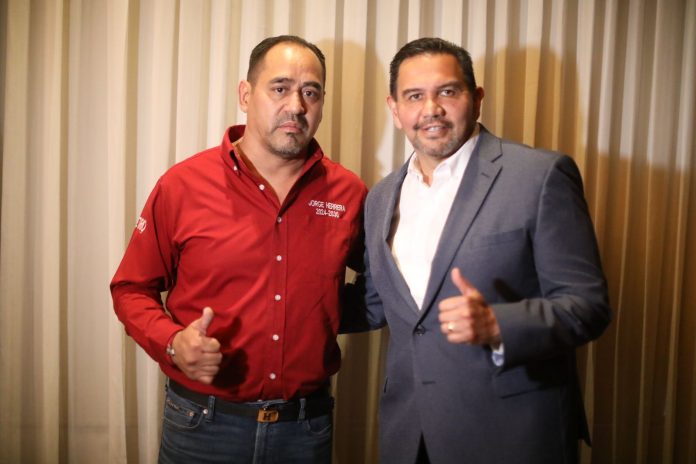 Ciudad Juárez.- El Presidente Municipal, Cruz Pérez Cuéllar recibió la visita de Jorge Herrera Navarro, quien fue elegido recientemente como secretario general de la Sección VIII del Sindicato Nacional de Trabajadores del Seguro Social en Chihuahua.