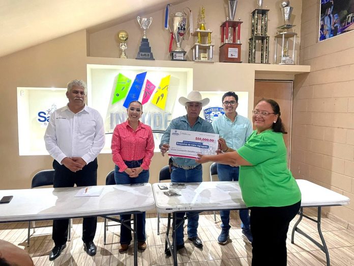 Saucillo.- La alcaldesa de Saucillo, Lic. Aidé López de Anda, encabezó la entrega de apoyos del programa de Valor Agregado para Productos Primarios Agropecuarios, beneficiando a siete productores locales con una inversión a fondo perdido de $318,978.50. Este programa es impulsado por la Secretaría de Desarrollo Rural del Estado a través del departamento de Agronegocios, y coordinado con los municipios de la entidad.