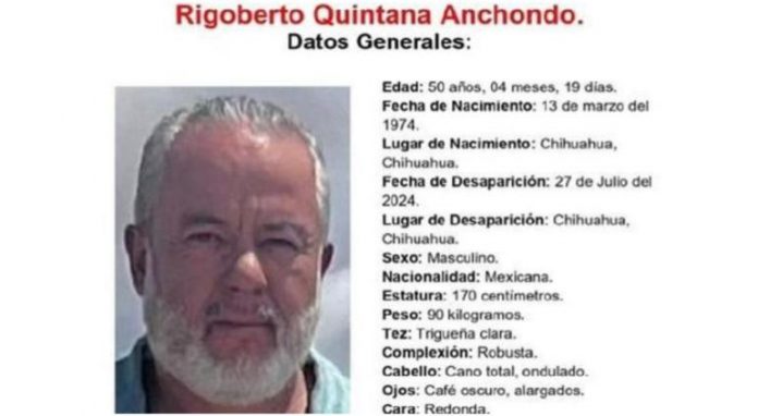 Rigoberto Quintana Anchondo, contaba con reporte de desaparición desde el pasado 27 de julio del presente año, siendo visto por última vez cuando salió de Chihuahua capital con destino a Cuauhtémoc, sin embargo, nunca llegó a la ciudad.