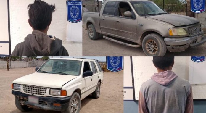Elementos de la Agencia Estatal de Investigación (AEI) con Destacamento en Jiménez, detuvieron en flagrancia a dos adolescentes de 15 y 17 años de edad, momentos después que fueron reportados por hurtar y causar daños a dos automotores.