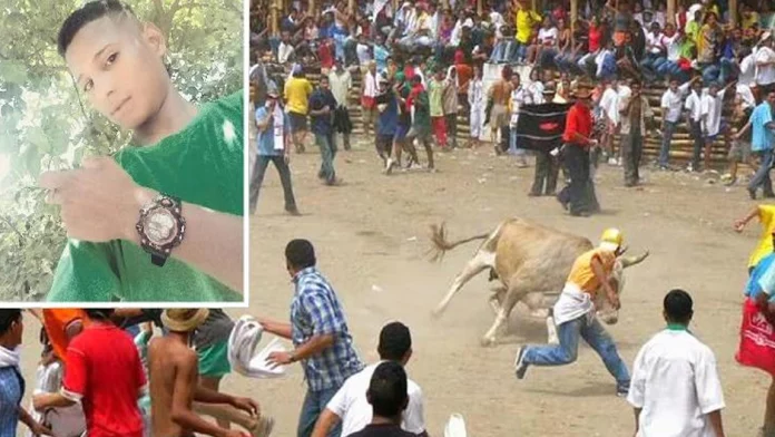 Un joven de 17 años murió corneado por un toro luego de que se metiera irresponsablemente a un ruedo durante una festividad que se realiza en Colombia. Se dice que también hay dos personas heridas de gravedad.