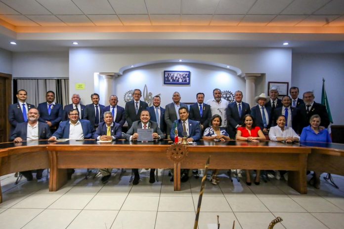 Delicias.- Durante una emotiva sesión de socios del Club Rotario Delicias, celebrada la noche del miércoles, el alcalde Jesús Valenciano fue galardonado con la Insignia Paul Harris, la máxima distinción otorgada por el Rotarismo. Este reconocimiento destaca su colaboración constante y efectiva con el club en diversos proyectos que han beneficiado a la comunidad de Delicias.