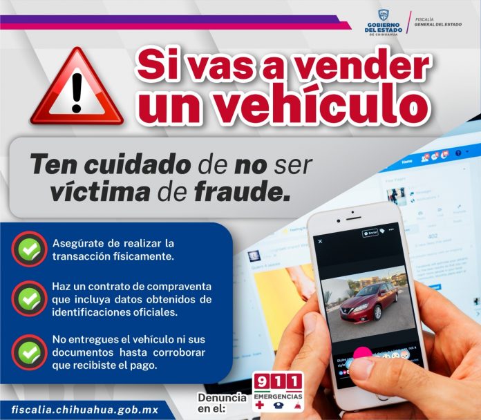Delicias.- La Unidad de Investigación y Persecución del Delito de la Fiscalía de Distrito Zona Centro en el municipio de Delicias, alerta a la ciudadanía sobre fraudes cometidos en la compra venta de vehículos a través de Facebook, ante dos denuncias que se presentaron con ese modus operandi.