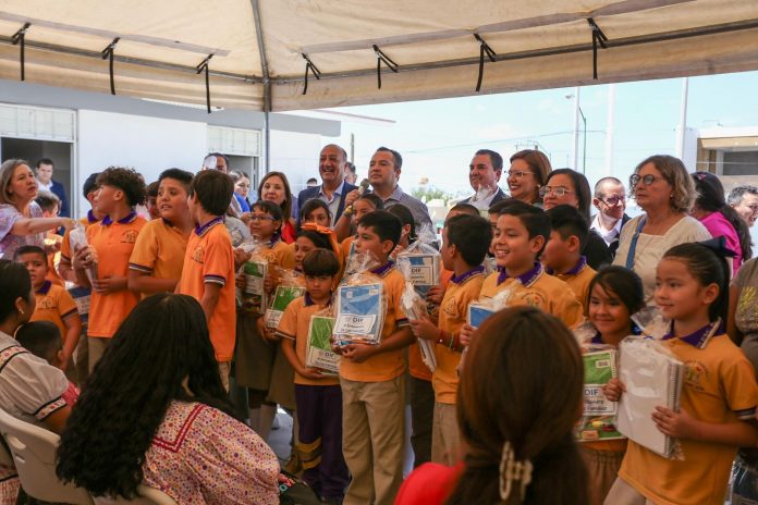 Este lunes, el municipio de Delicias celebró un significativo avance en infraestructura educativa con el banderazo de inicio para la construcción de techumbres en seis escuelas, gracias a una coinversión entre estado y municipio de casi 11 millones de pesos. El evento, encabezado por el alcalde Jesús Valenciano García y el secretario de Educación del Gobierno del Estado, Francisco Hugo Gutiérrez Dávila, tuvo lugar en la primaria Manuel Gómez Morín, ubicada en el fraccionamiento Campo Real, uno de los planteles beneficiados.