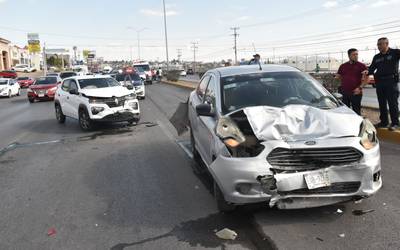 Chihuahua.- Una carambola donde siete vehículos se vieron involucrados en el Periférico de la Juventud dejó al menos tres automóviles con cuantiosos daños materiales y un gran congestionamiento vial.