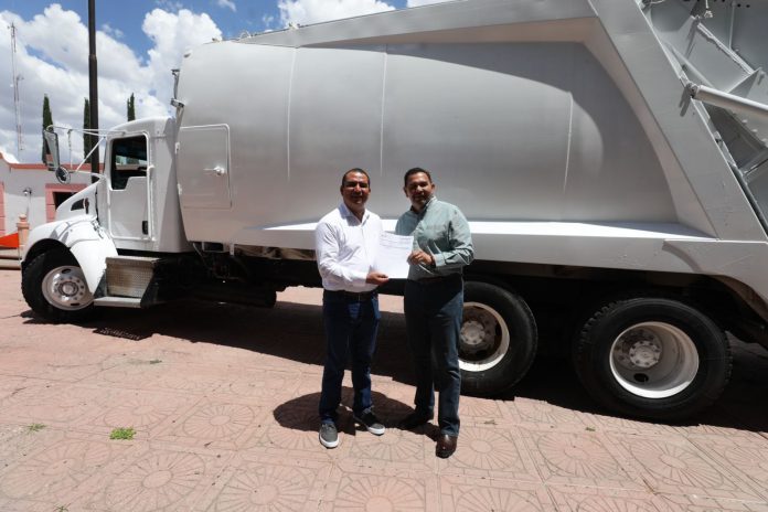 Entrega Cruz Pérez Cuéllar camión recolector a La Cruz, Chihuahua